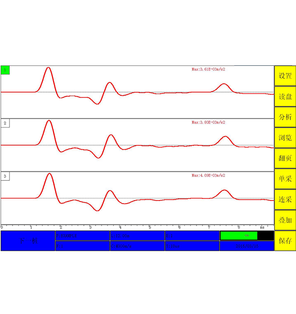 1、獨(dú)創(chuàng)瞬時(shí)浮點(diǎn)放大技術(shù),兼顧強(qiáng)、弱信號(hào)的不失真采集; 2、可拆卸鋰電池,支持座充,可另配備用電池,保障野外工作不間斷; 3、支持中英文雙語操作; 4、具有淺部缺陷的三維修正功能,缺陷定位準(zhǔn)確; 5、內(nèi)置藍(lán)牙、Wifi具有實(shí)時(shí)監(jiān)控?zé)o線上傳的功能; 6、可實(shí)現(xiàn)現(xiàn)場(chǎng)多錘疊加,信號(hào)平均,實(shí)時(shí)保存分析結(jié)果; 7、采樣間隔可手動(dòng)調(diào)節(jié),信號(hào)時(shí)程曲線可任意壓縮、展開; 8、現(xiàn)場(chǎng)分析實(shí)現(xiàn)指數(shù)放大倍數(shù)調(diào)節(jié)和指數(shù)放大起始位置調(diào)整; 9、現(xiàn)場(chǎng)分析可計(jì)算、標(biāo)識(shí)缺陷位置,精確到0.01m; 10、數(shù)據(jù)可直接用U盤導(dǎo)出; 11、可配置多種進(jìn)口加速度傳感器; 12、屏幕亮度可調(diào),適合在各種光照條件下使用; 13、背景顏色和時(shí)程曲線顏色可調(diào),滿足客戶需求。